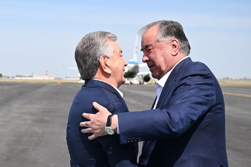 Дар фурудгоҳи байналмилалии Бухоро Эмомалӣ Раҳмонро ҳамтои ӯзбекистонияш Шавкат Мирзиёев истиқбол гирифтааст.