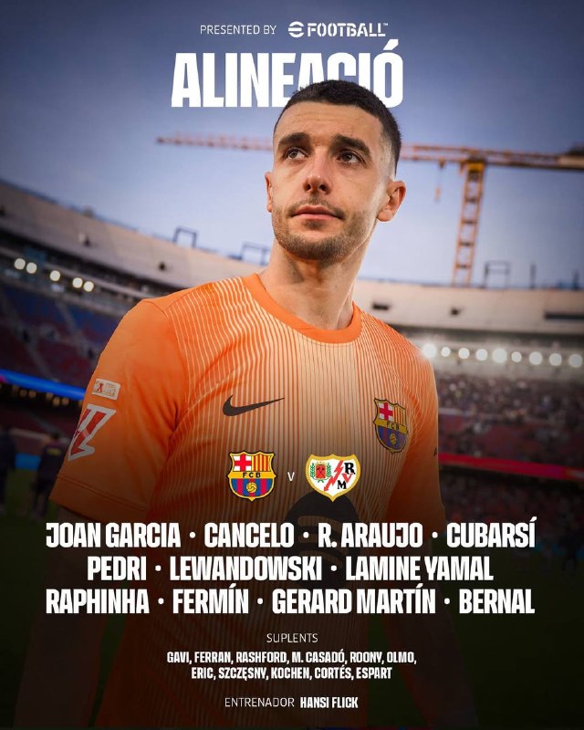 Стартовый состав Барселоны на сегодняшний матч против Райо Вальекано.